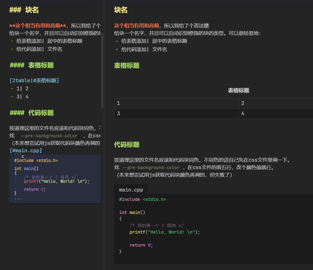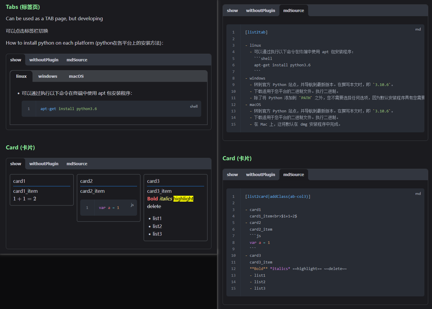 (Obsidian plugin, Markdown-it plugin, Vuepress plugin, CodeMirror plugin, Online App) - Feature: You can flexibility to create a 'Block' by many means. It also provides many useful features, like
