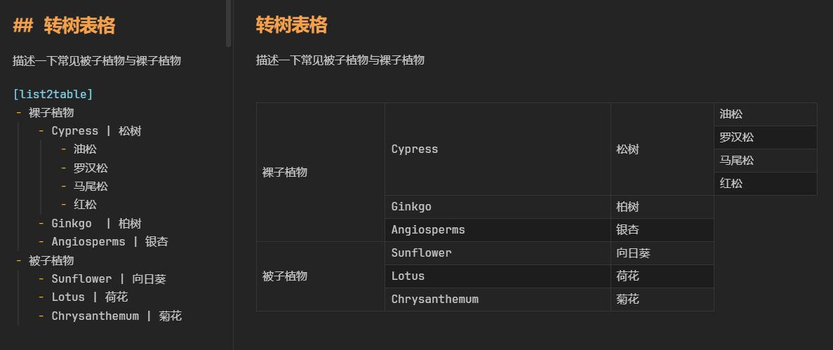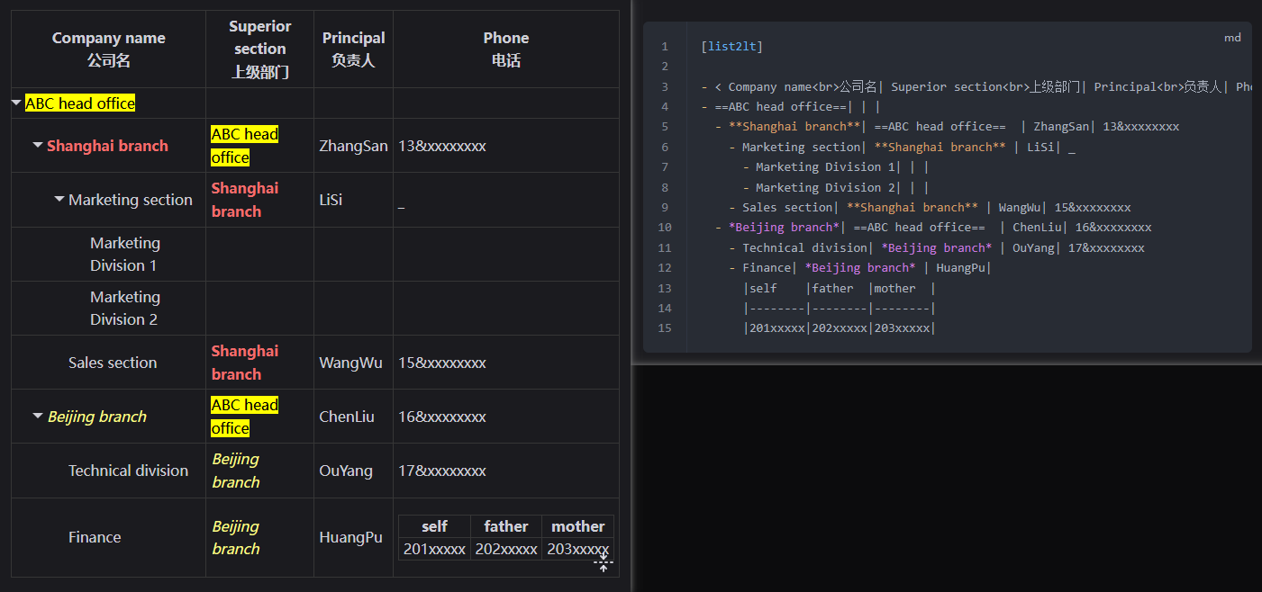 :::), and trun into table/tabs/dir/card/column/mindmap/markmap/mermaid/PlantUML/timeLine/jsonChart/nodeTree and more