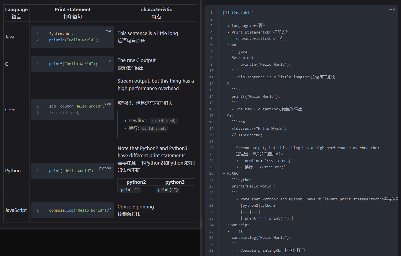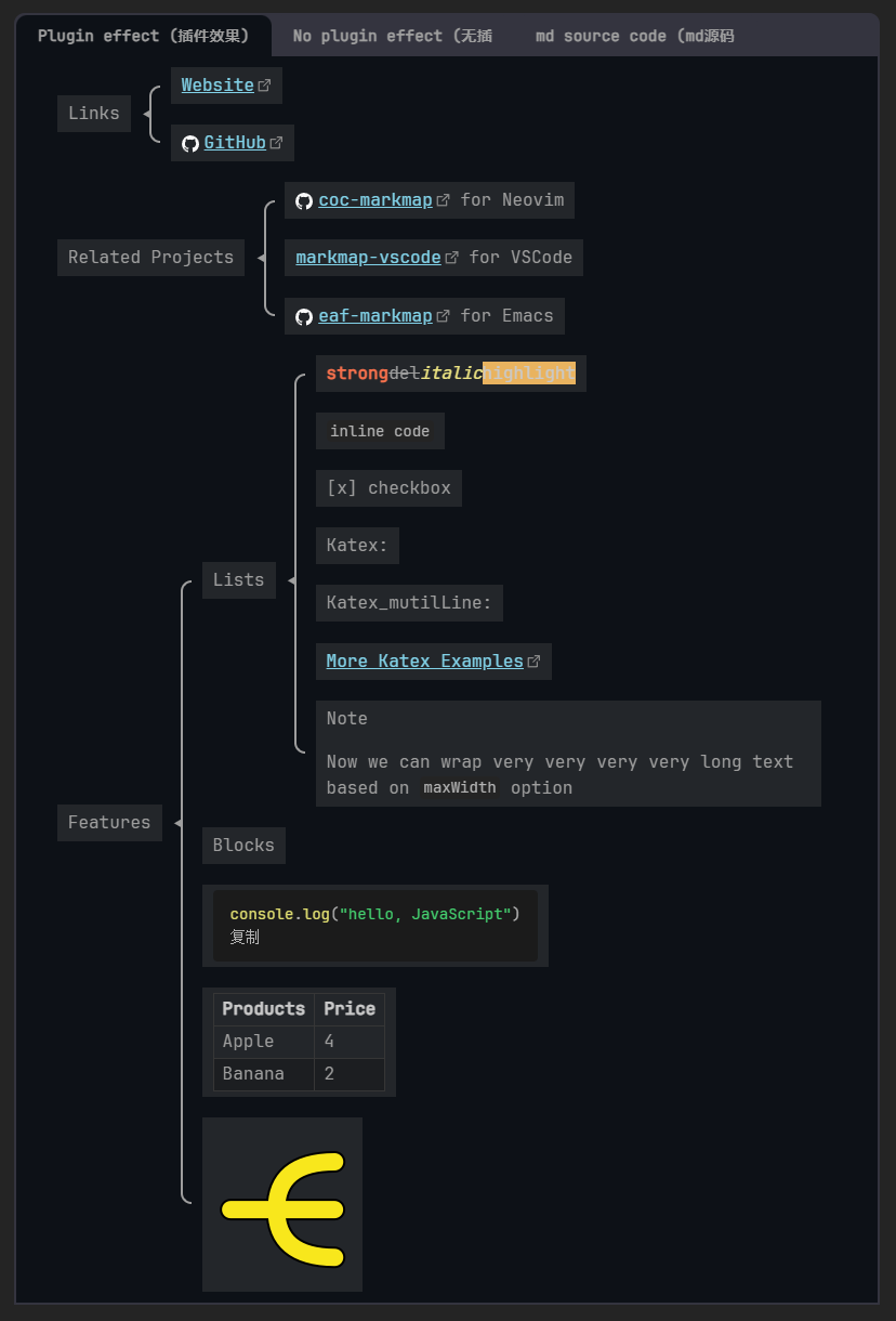 - It can use: Obsidian plugin, Markdown-it plugin, Online App, Vuepress plugin