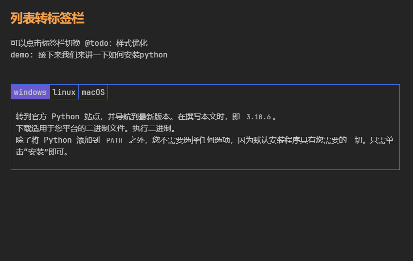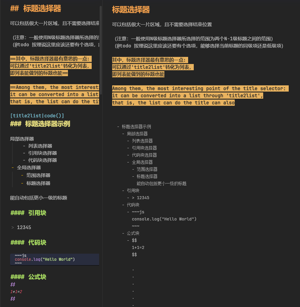 The above only shows a few of the processors of the plugin. In fact, it supports a wide variety of processors and functions. The processors can be freely combined in series, and in addition to the list selector, it also supports many other selectors such as headings, code blocks, and quote blocks. For more functions, please refer to the more detailed documentation